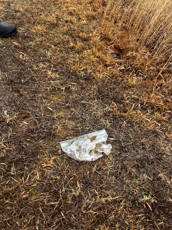 Additionally, a comment on micro plastics: a very common thing I’ve encountered is forgotten plastic bags that sit so long they simply break into a bunch of tiny pieces when you try to pick it up. Something to be aware of is how these bags or other plastics will eventually break down and turn into micro plastics in the soil if we don’t make an active effort to pick them up before they sit too long!